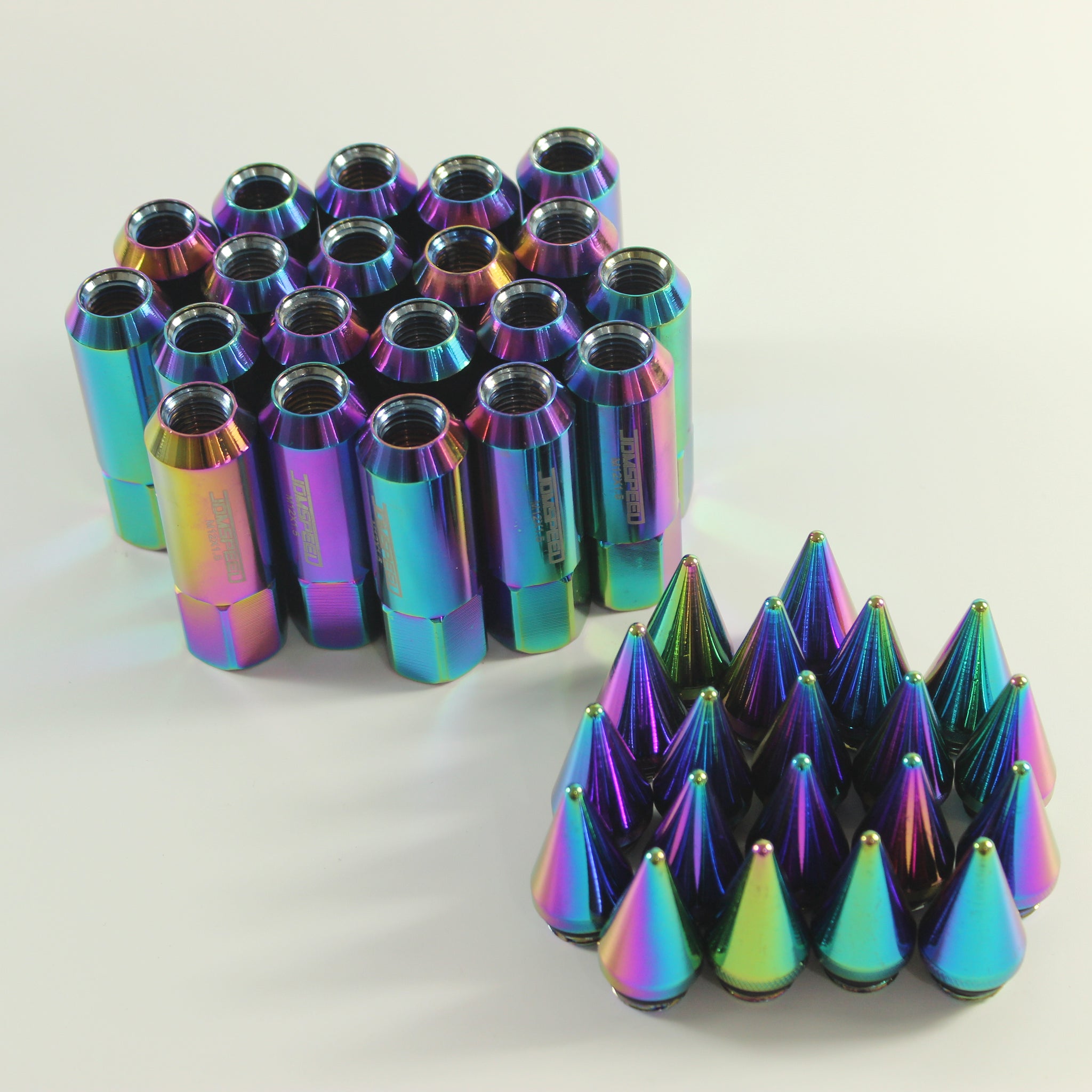JDMSPEED 20PCS M12X1.5 Neo Chrome SPIKED Extended Tuner 60mm Lug Nuts Wheels Rims