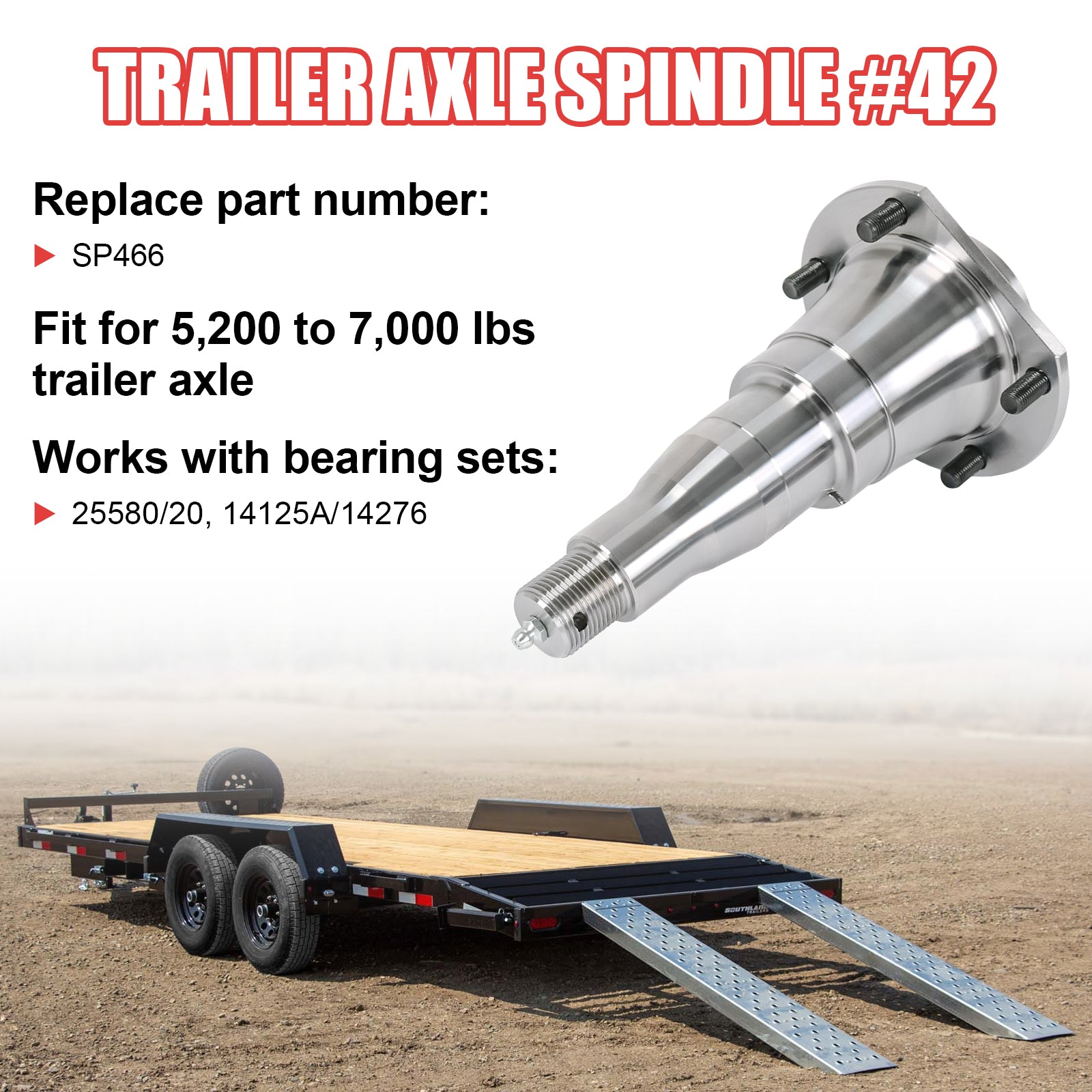 JDMSPEED 2x SP466 Spindle #42 E-Z Lube w/ 5-Bolts NEW Fits Trailer Axle 5200-7000 lbs