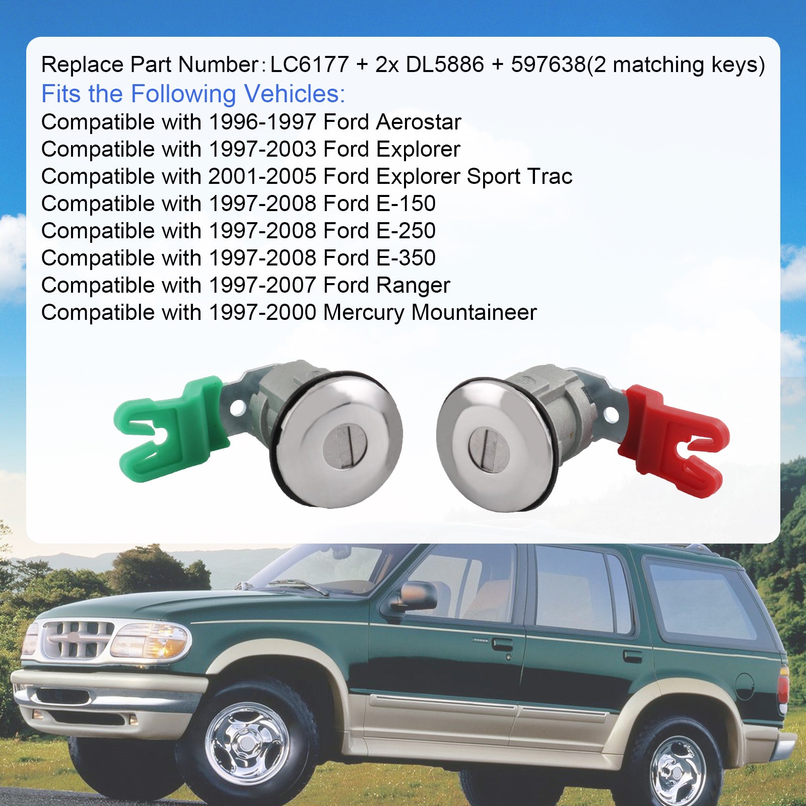 JDMSPEED Ignition Switch Lock Cylinder + 2X Door Lock Cylinder W/2 Logo Keys For Ford